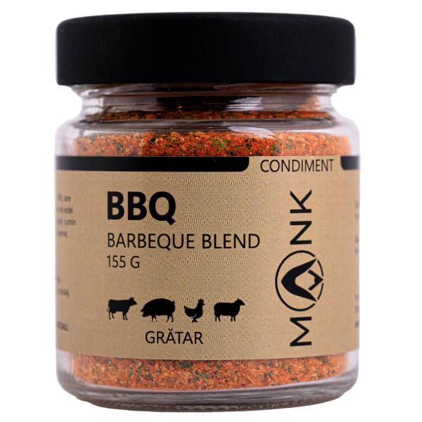 Cu o combinație fermecătoare de ingrediente precum sare, zahăr brun, piper negru, paprika și alte mirodenii deosebite, condimentul BBQ de la Monk va transforma fiecare mușcătură într-o experiență gustativă de neuitat.