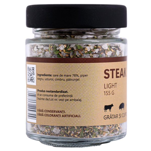 Transformă orice masă într-un festin cu Steak Light de la Monk! Creat dintr-un amestec perfect echilibrat de sare de mare, piper, pătrunjel, usturoi și cimbru, acest condiment este soluția ideală pentru a adăuga un gust rafinat și aromat preparatelor tale. Fie că pregătești carne de porc la grătar, de pui sau de vită, Steak Light îți garantează o experiență culinară de neuitat. Fără conservanți, coloranți artificiali sau anti-aglomeranți, doar ingrediente pure și naturale.