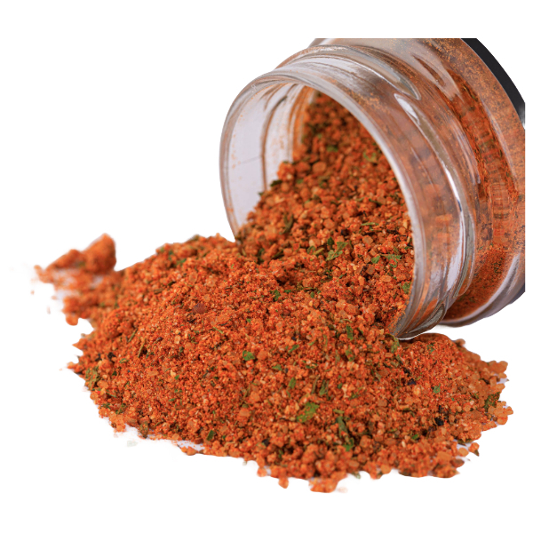 Ingrediente: Sare de mare, boia de ardei dulce, usturoi, ceapă, oregano, piper negru, piper alb, ardei Cayenne, cimbru.
